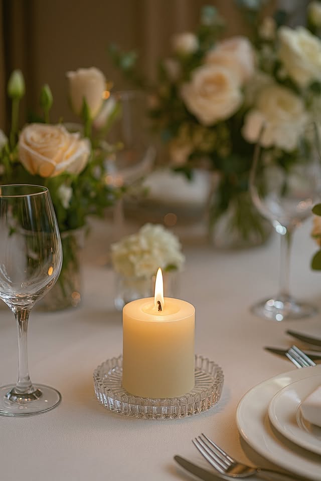 Classic clear glass pillar candle holders with a refined silhouette. Versatile enough for any wedding style, these holders create a clean, polished look that lets the candlelight take centre stage. Fits standard 3-inch pillar candles.