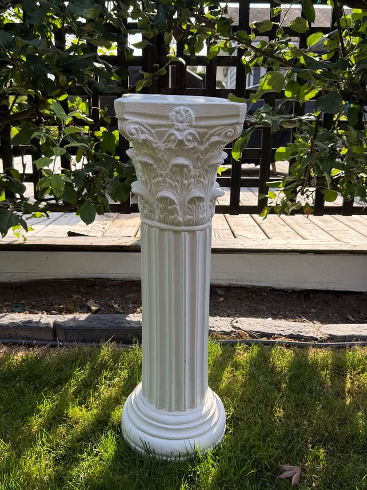 An ornate display pillar with decorative detailing for a more traditional, classical look. Adds architectural elegance to ceremony setups, entrance displays, and reception focal points. The carved detail catches light beautifully in photos.