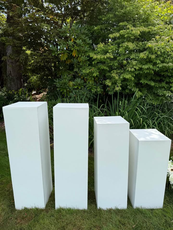 Yes, we carry plinths in 30-inch, 36-inch, and 42-inch heights. Grouping different heights creates visual interest for ceremony entrances, stage decor, and dessert displays.