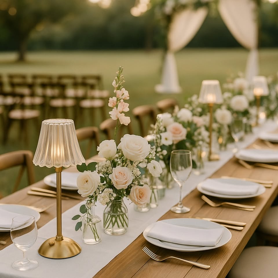 Yes. Cordless LED lamps provide warm ambiance without open flames, making them ideal for tented venues, windy locations, and venues with fire restrictions.