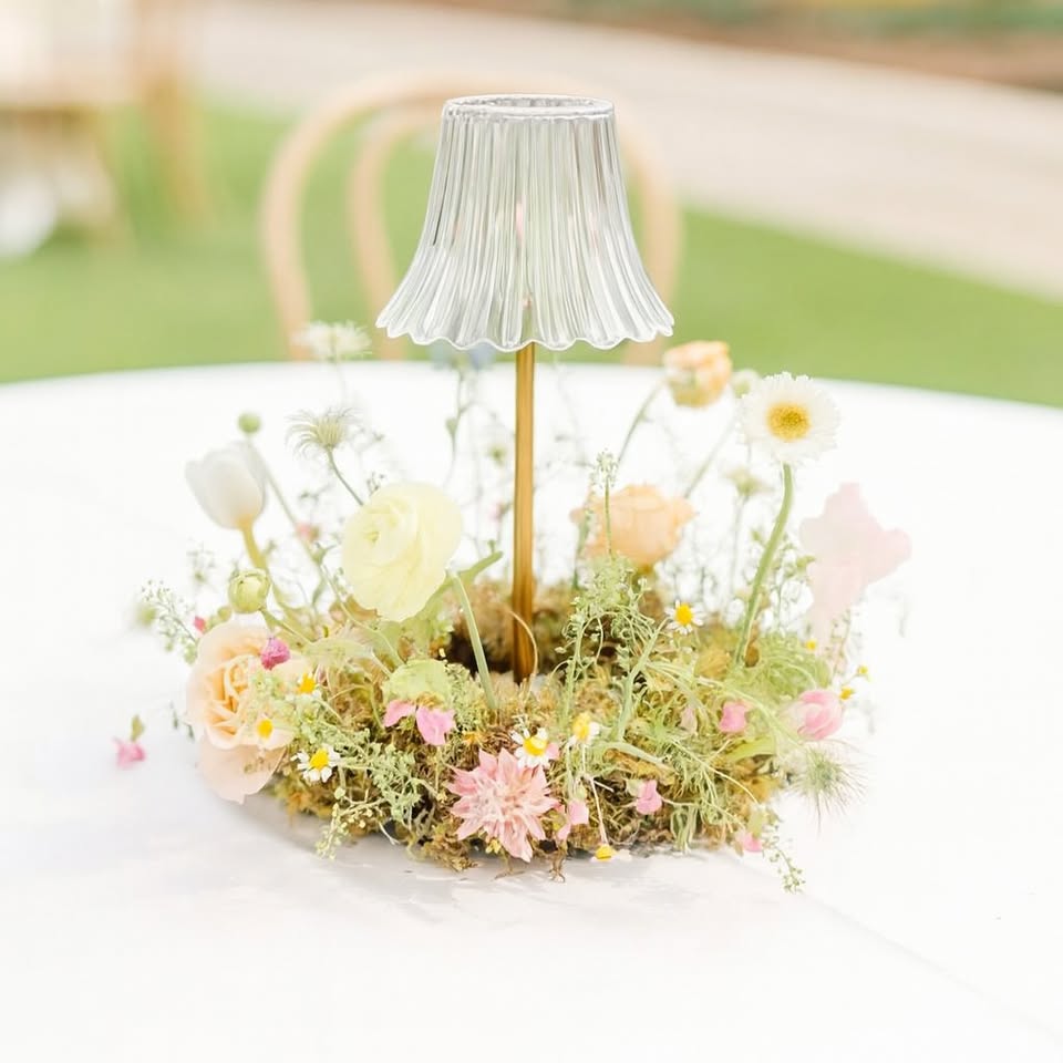 Warm, cordless LED table lamp that creates intimate ambiance without open flames. The flickering LED mimics real candlelight in photos and looks stunning on guest tables, bar areas, and cocktail stations. Ideal for venues with flame restrictions, tented events, and outdoor settings where wind is a factor.