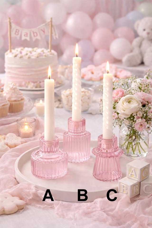 Pink Glass Candle Holders